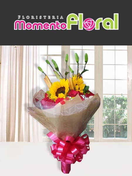 Ramo redondo pequeño de variedad de flor. ¿Lo necesitas para hoy? Escríbenos al WhatsApp 3112378738 para confirmar disponibilidad y coordinar la entrega para el mismo día.